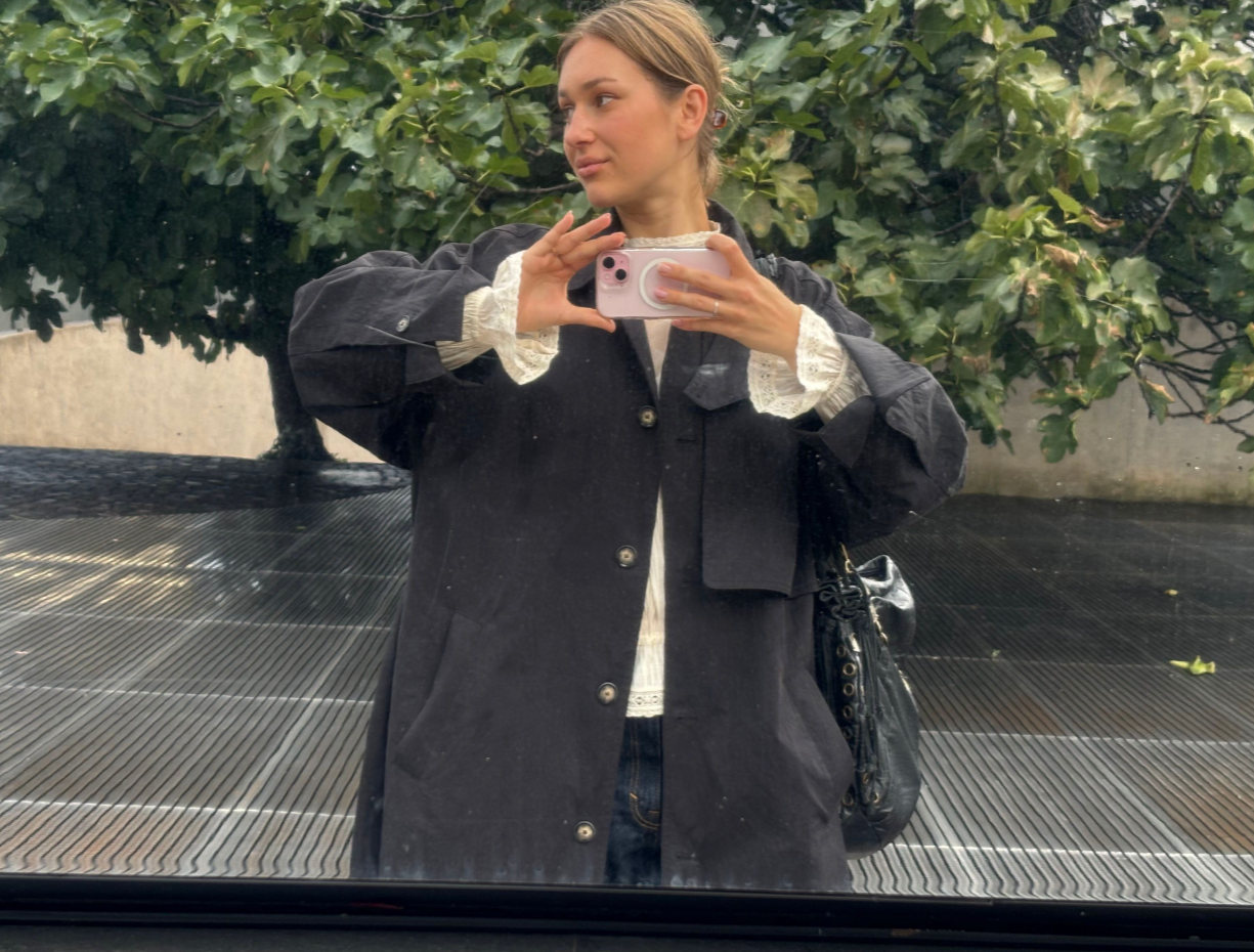 My cheat code? Put your faith in your coat. This week, I chose the long black Khy coat. Underneath: black BOSS pants, a black Abercrombie & Fitch top (which is sold out so I’m linking an alternative), a cropped SKIMS cardigan, and black ballerinas from a little Paris boutique. It’s all I want: simple, timeless, and temperature-proof. Perfect.
